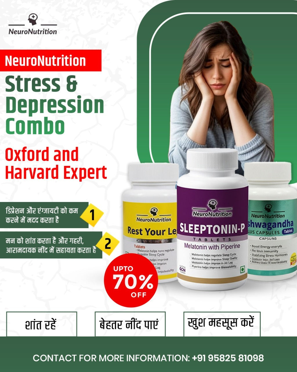 NeuroNutrition Depression ,Anxiety and Sleep Issues Kit Combo(1Pack Sleeptonin P,1 pack Rest Your Legs and 1 Pack Ashwaganda Capsules) (Copy)